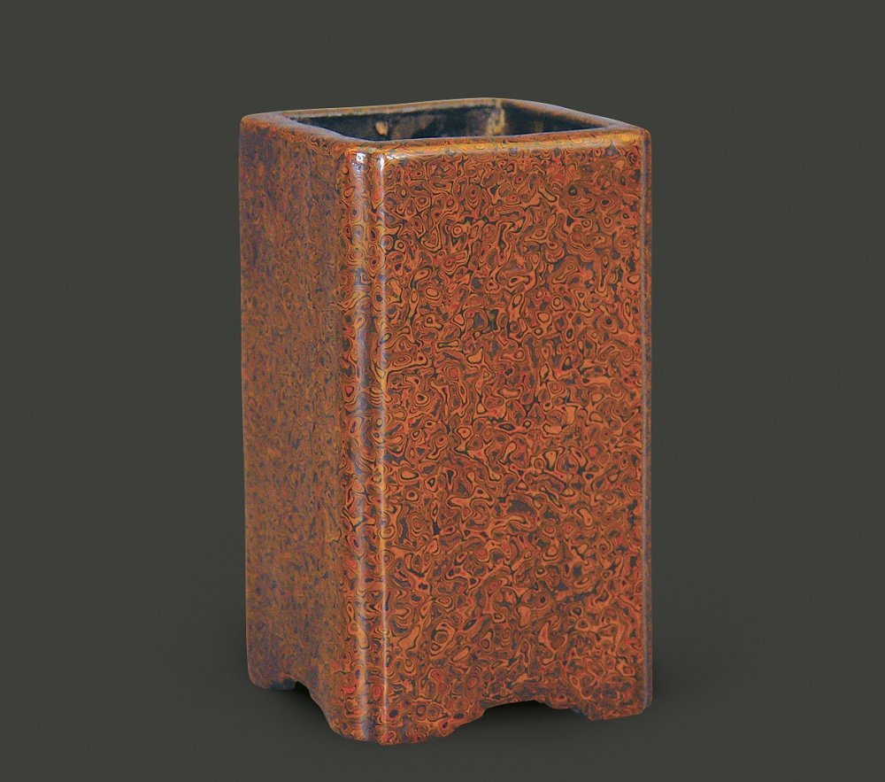 清 犀皮漆四方笔筒