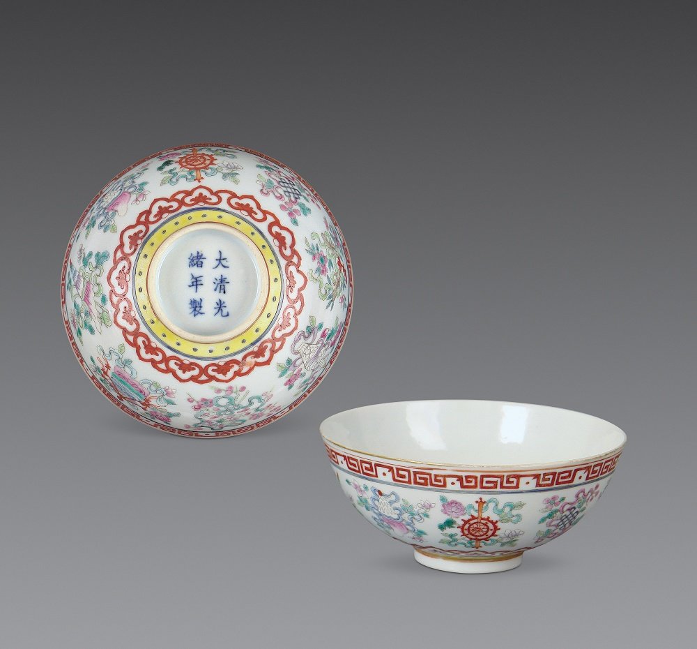 清光绪 粉彩吉祥八宝纹碗一对
