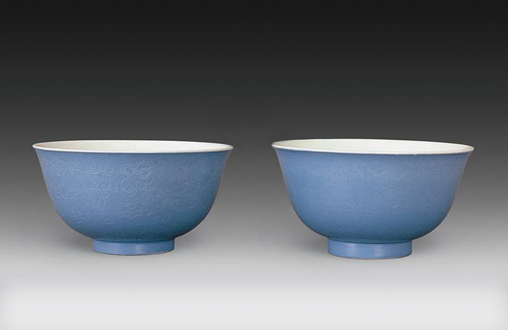 080炉钧釉暗刻龙纹碗(一对)