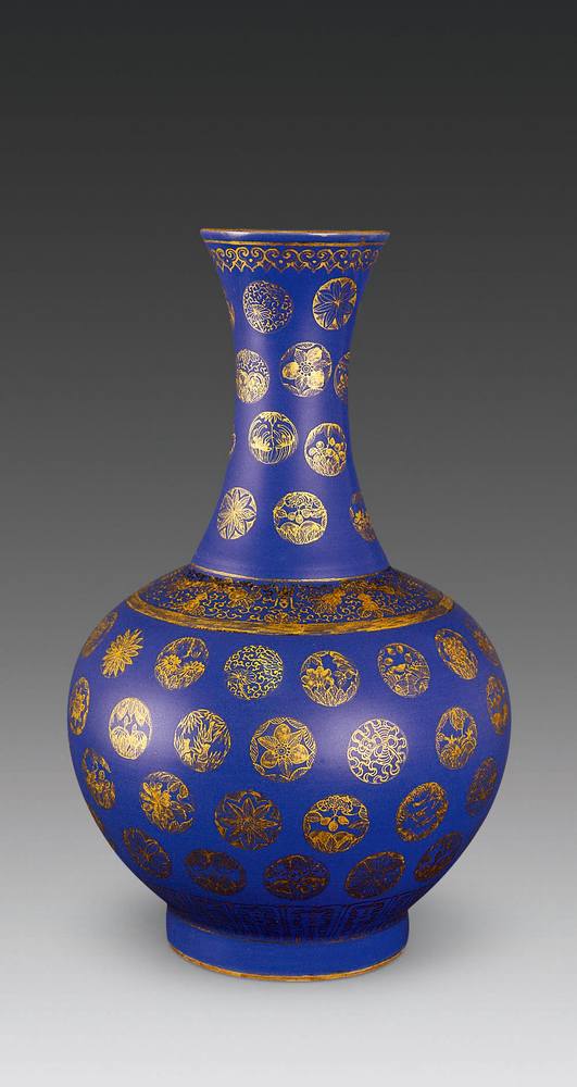 霁蓝釉描金赏瓶